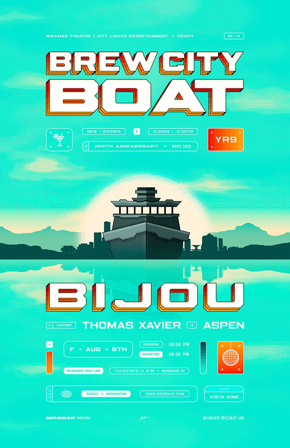 FRI AUG 8TH — Get nautical with BIJOU on Brew City Boat with support by Thomas Xavier & Aspen! Limited capacity, so secure your tickets today!