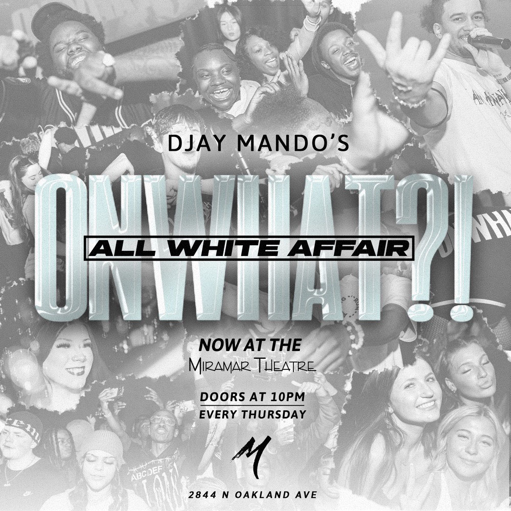 OnWhat?! [Thursdays] – All White Affair + Add to Google Calendar + iCal / Outlook export The event is finished. Tags: college night, mando Date 2 Apr 2026 Expired! Time 9:30pm - 1:00am More Info Tickets Location Miramar Theatre 2844 N Oakland Ave, Milwaukee, WI 53202 Organizer DJ Mando Tickets Share this event